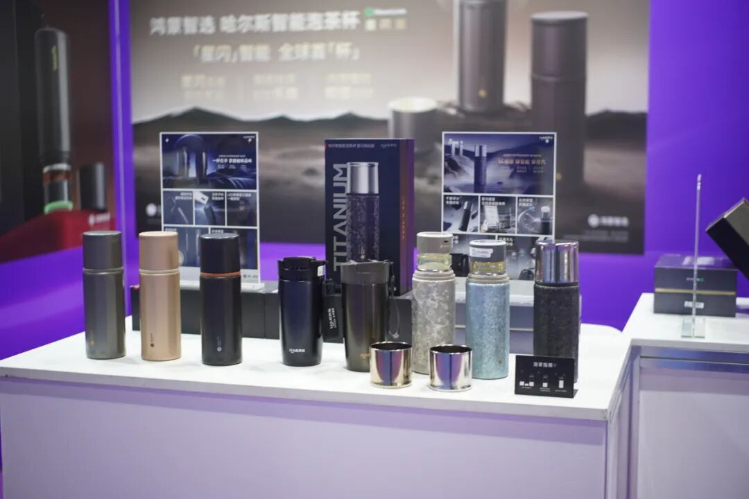 哈尔斯的展台前最引人注目的是一款与华为联合研发的智能泡茶杯。现场人员向观众展示,通过选择App上预设的泡茶配方,再将手机NFC与杯盖轻轻一碰,杯子就会根据配方中茶叶的特性,自动匹配合适的水温和浸泡时间。