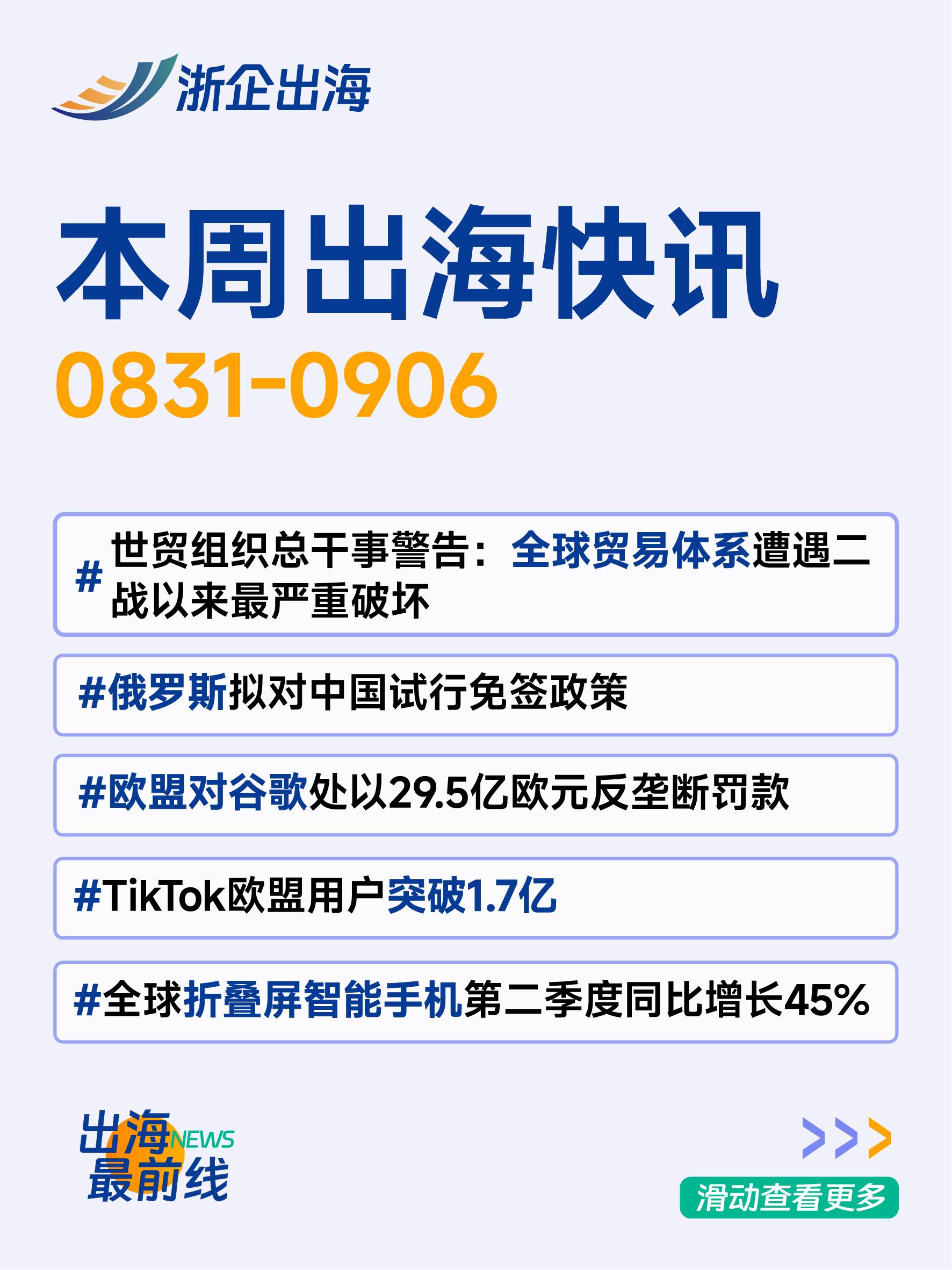 俄罗斯拟对中国施行免签政策;欧盟对谷歌处以29.5亿罚款;世贸组织干事:全球贸易体系正遭受二战以来最严重破坏