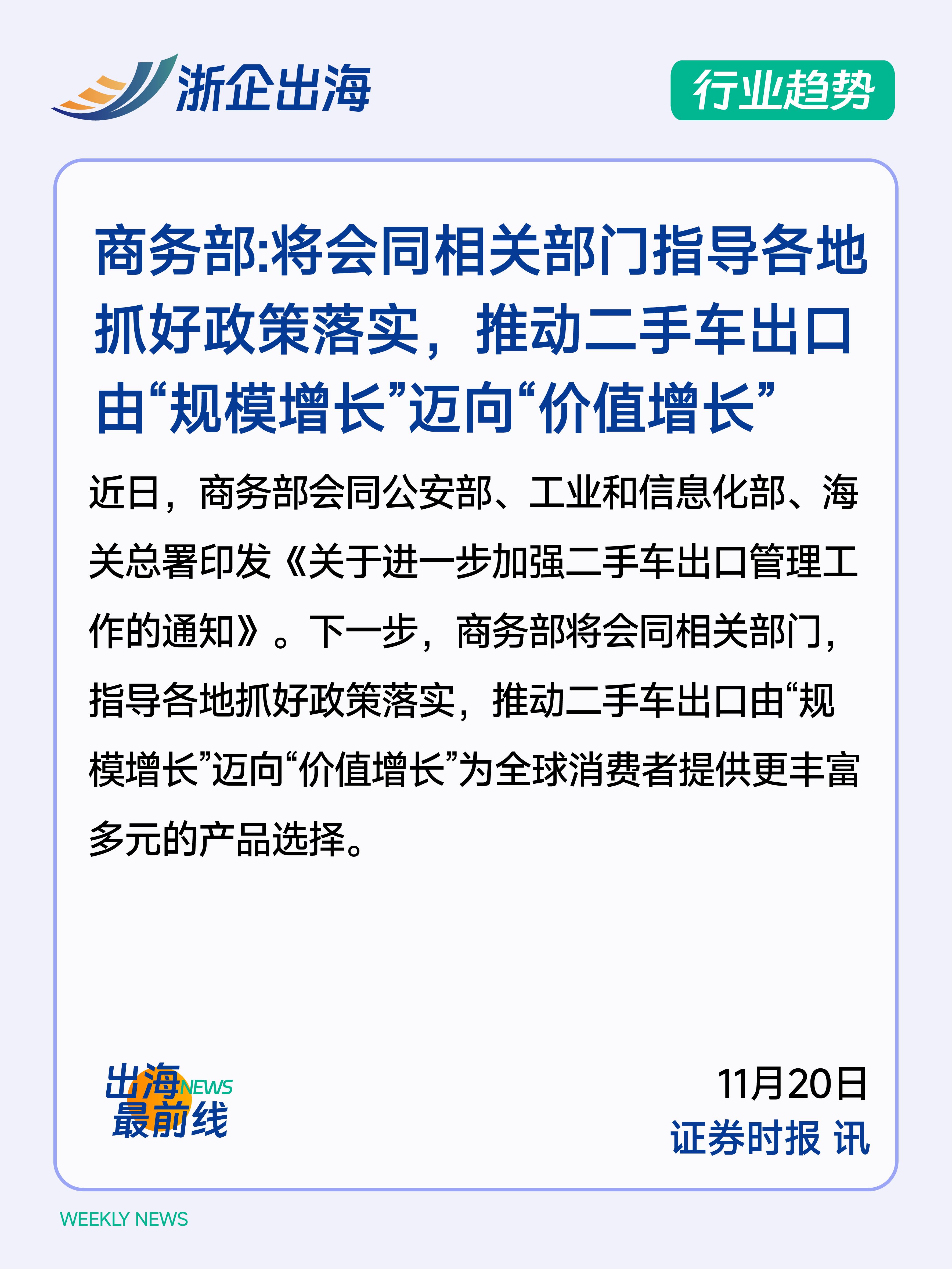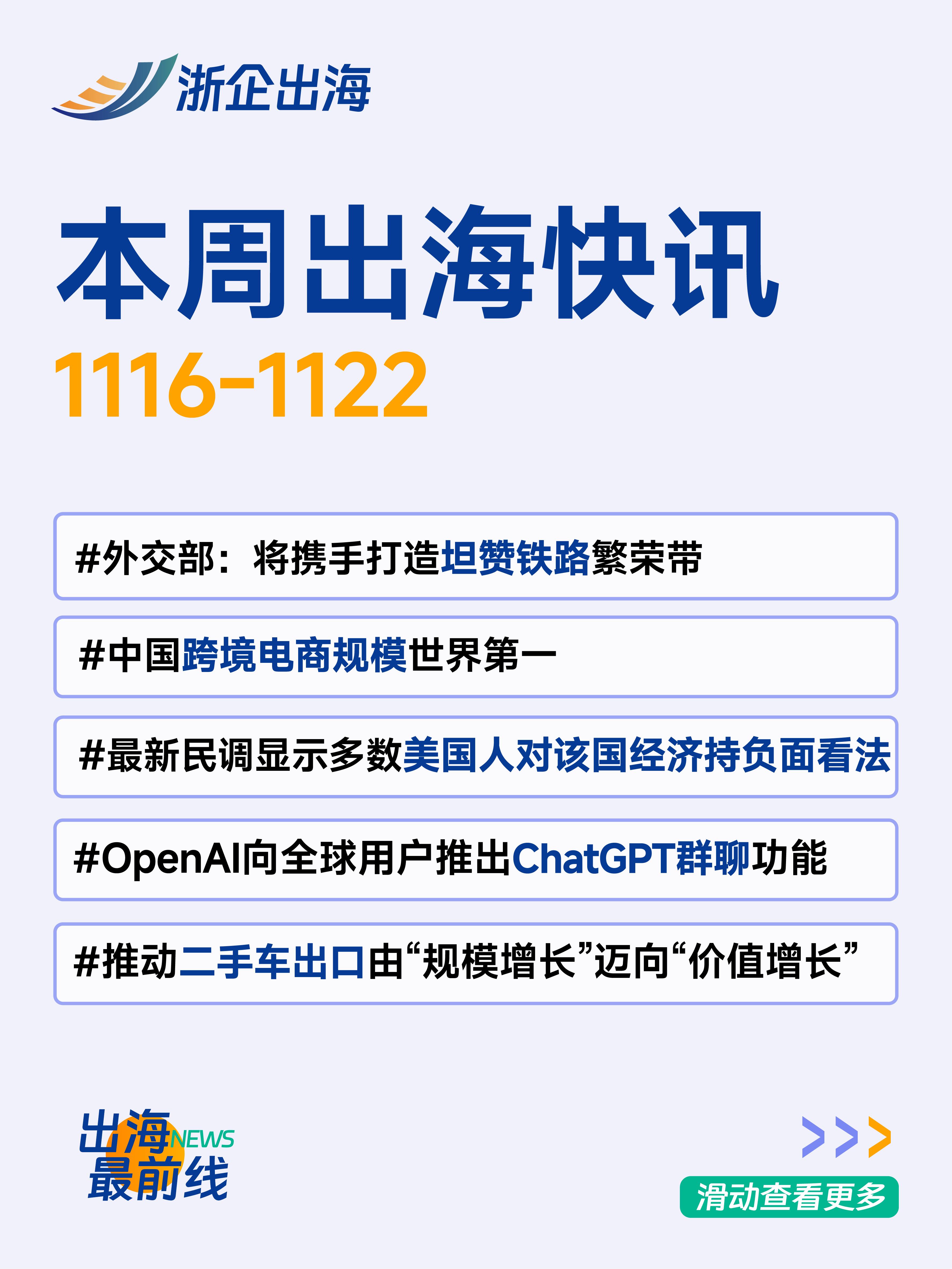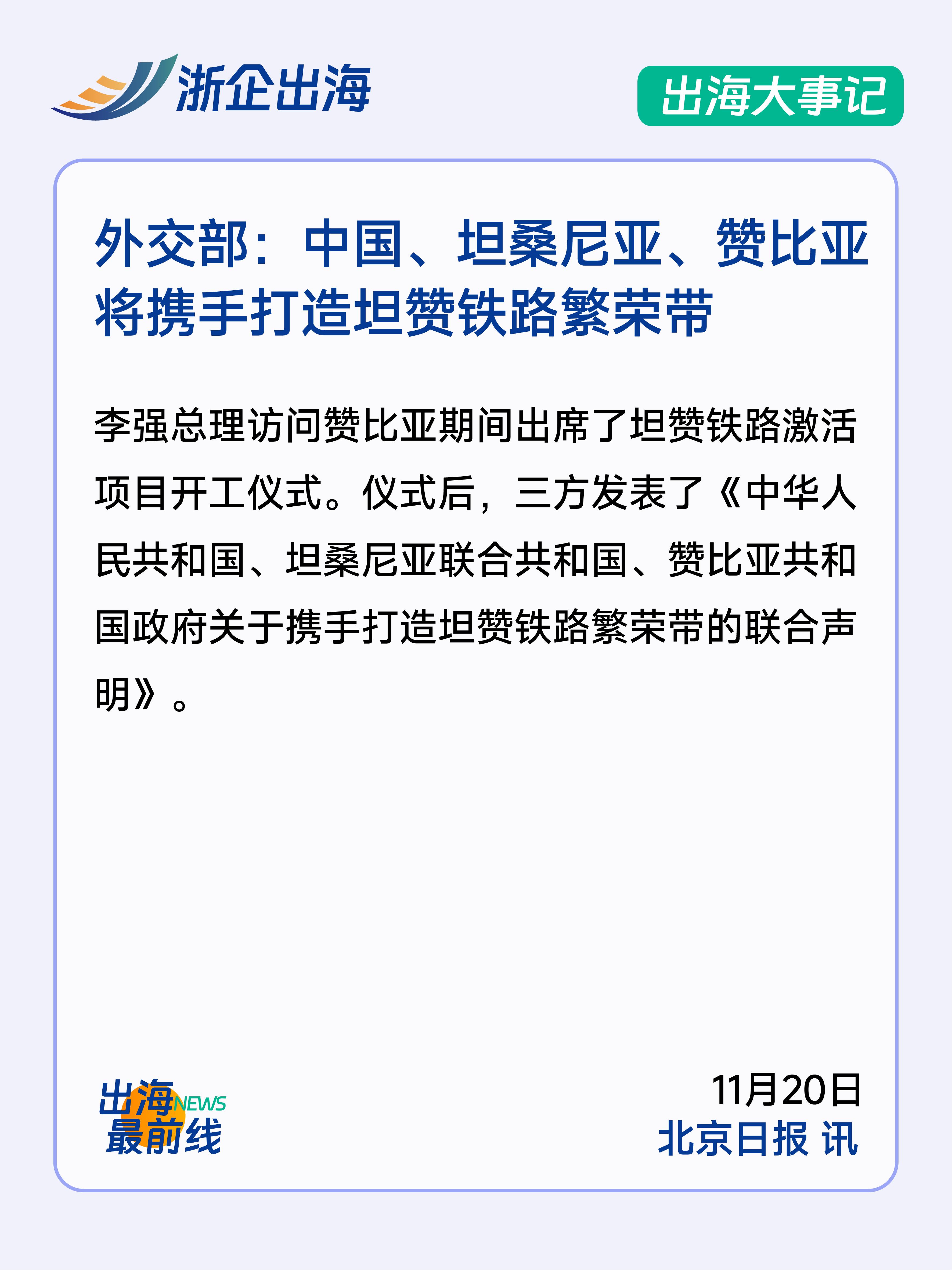 外交部:中国将携手打造坦赞铁路繁荣带;中国跨境电商规模世界第一;商务部将推动二手车出口由“规模增长”迈向“价值增长”