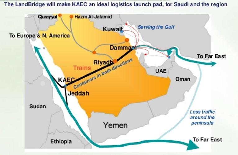 除了这些线路外,还将建立七个物流中心,包括朱拜勒工业城、达曼陆港、搬迁的利雅得陆港、利雅得哈立德国王机场、吉达陆港、阿卜杜拉国王港和延布工业城的设施。