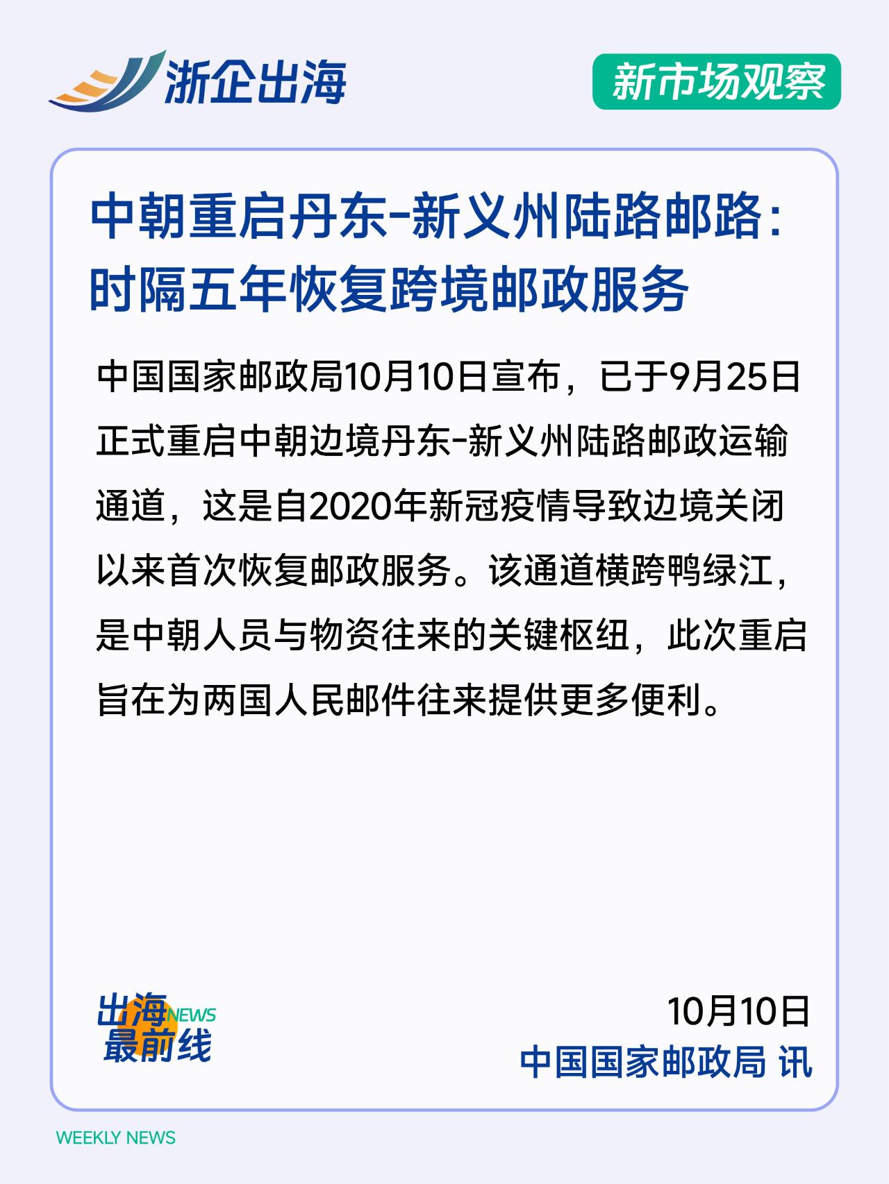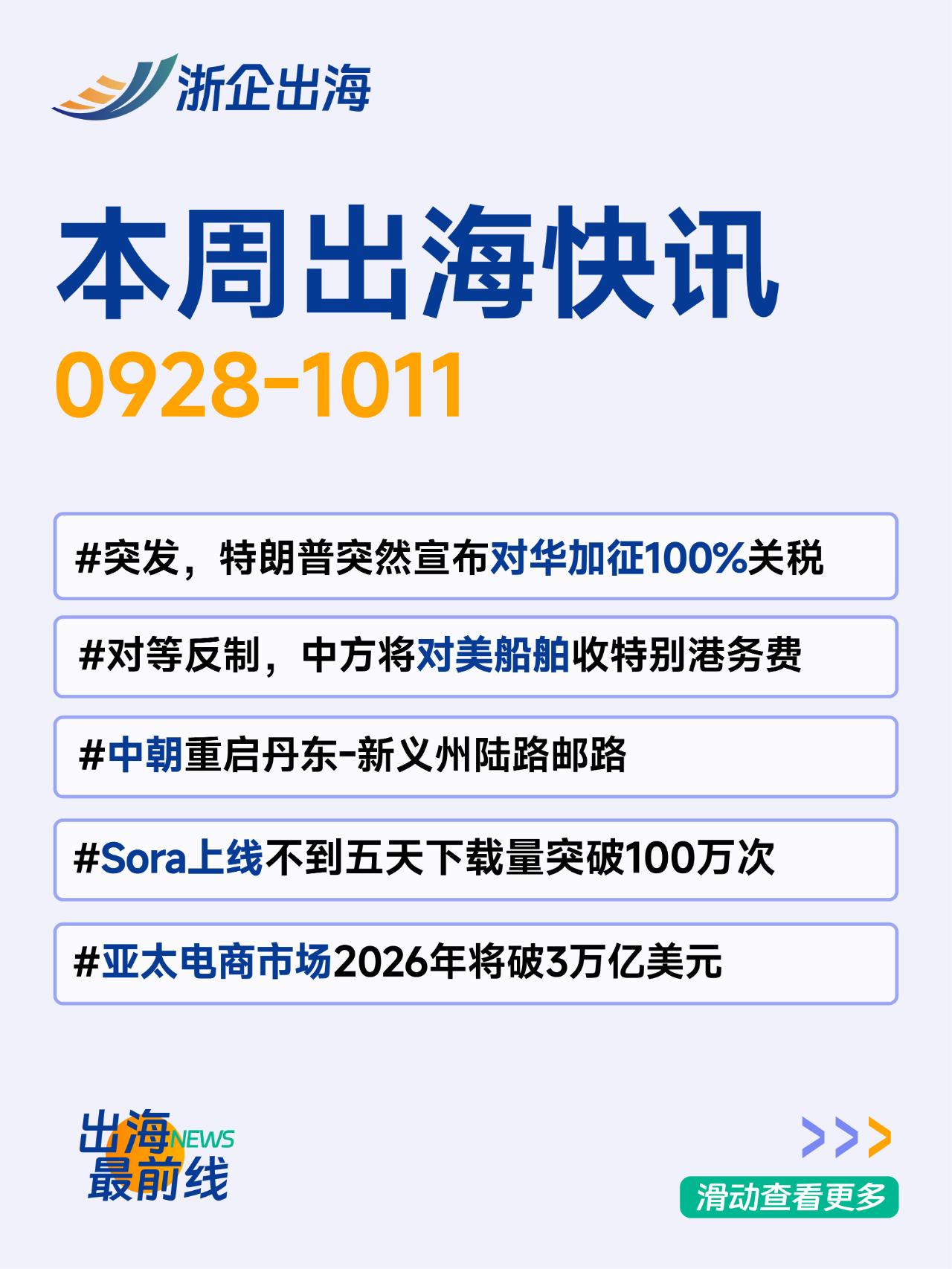 中方对等反制,对美船舶收特别港务费;美对华加征100%关税;中朝重启陆路邮路|出海最前线